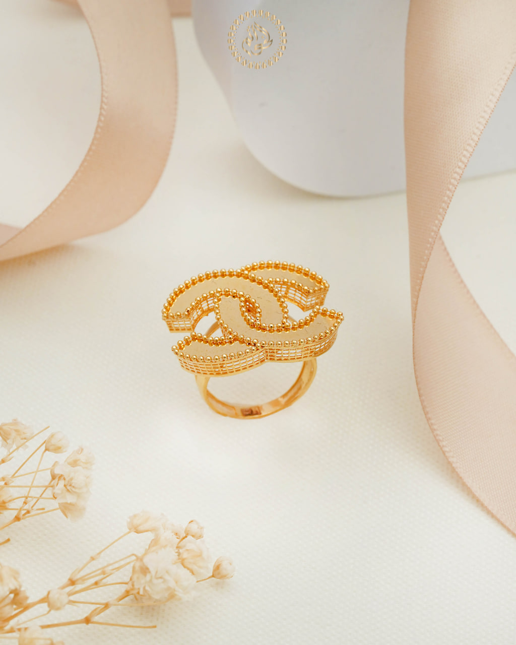 A unique twisted gold ring with overlapping curves and a glossy finish. Minimalist yet stylish for everyday wear.